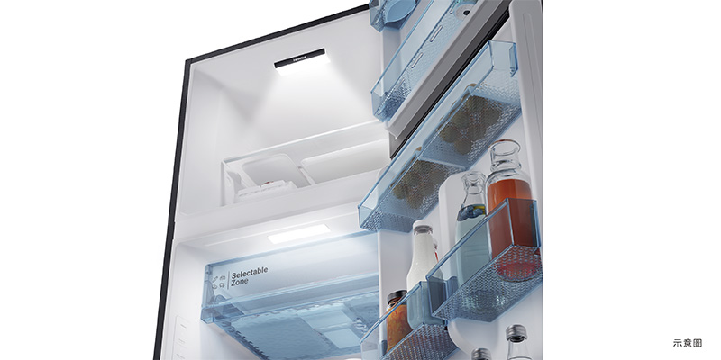 LED 照明不刺眼,且提供清晰明亮的視野,冷凍、冷藏室內的食材一目了然。