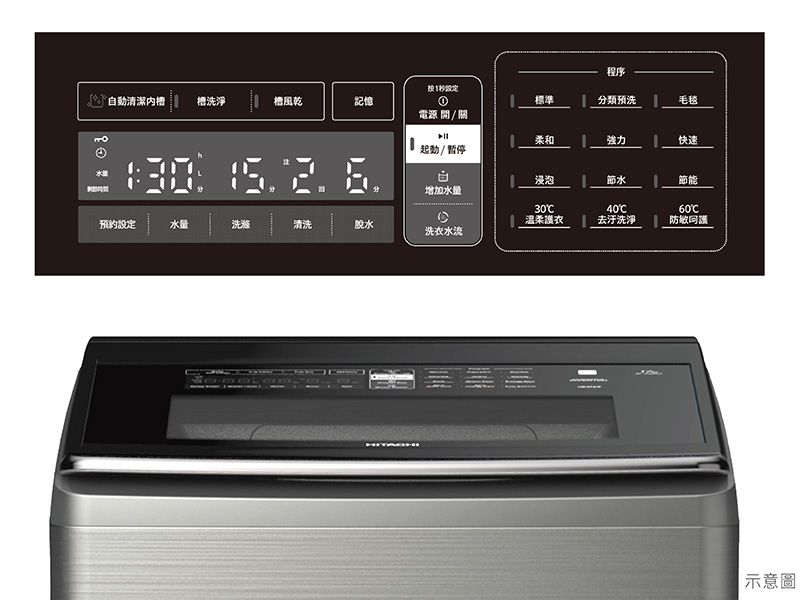 標準/柔和/浸泡 分類預洗/強力/節水 毛毯/快速/節能 |